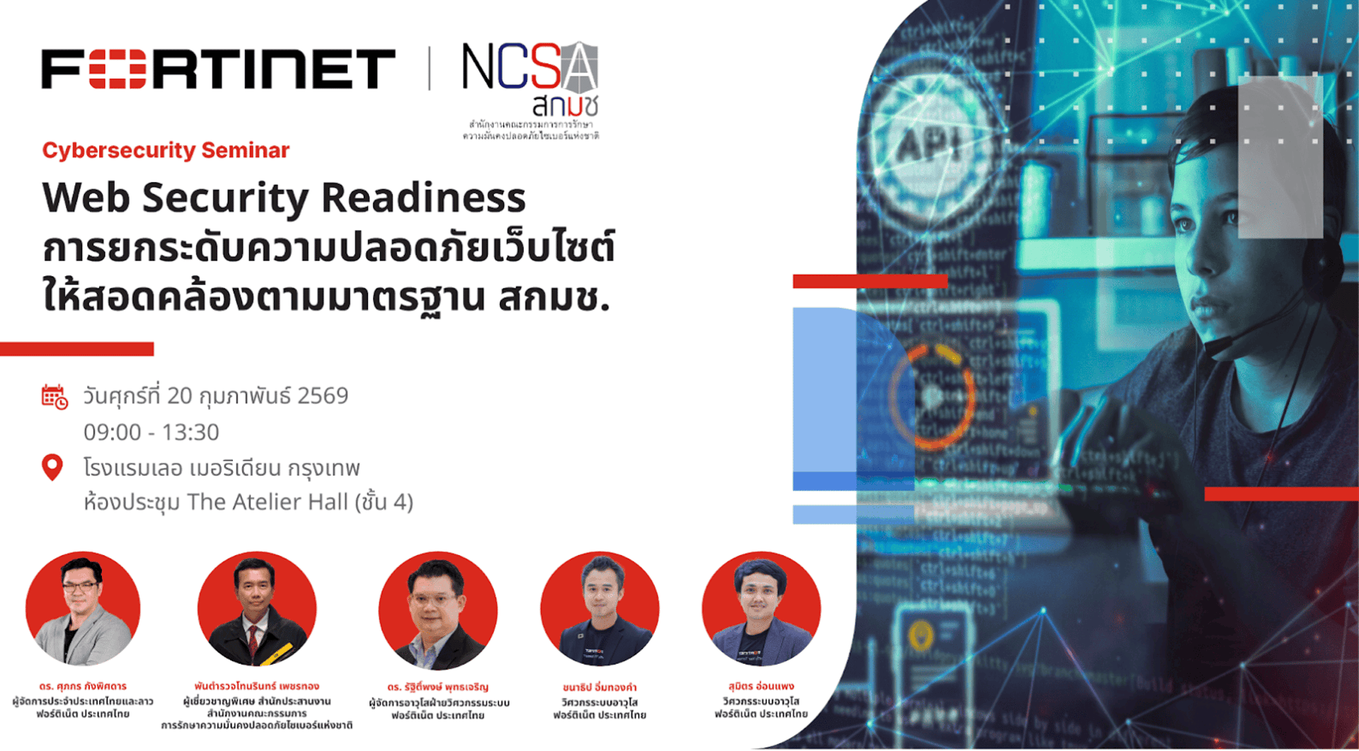 งานสัมมนานี้จะช่วยเสริมสร้างความเข้าใจเกี่ยวกับมาตรฐานการรักษาความมั่นคงปลอดภัยสำหรับเว็บไซต์จาก จากฟอร์ติเน็ตและสำนักงานคณะกรรมการการรักษาความมั่นคงปลอดภัยไซเบอร์แห่งชาติ (สกมช.) พร้อมแนวทางการนำไปปรับใช้จริง และการอัปเดตเทคโนโลยีการป้องกัน Web Application ยุคใหม่
